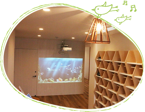 うららか保育園のこだわり うららか保育園では、子どもたちに美的感覚への意識や、保育士さんたちが職場として過ごしやすく楽しめることに配慮して、こだわりの外観・内装にしました。 デザイナブルな外観 エントランス 触るとお魚が飛び出す水族館 安心・安全で自由な中庭 室内トランポリン 0歳児用施設もあります 0歳児のお子さん用施設が併設。0歳児のお子さんものんびり・リラックスできます 0歳児用施設について詳しく見る